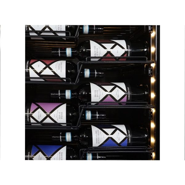 Cave à vin luxury avec 3 côtés verre à réfrigération statique pour 84 bouteilles made in italy – grilles plastifiées noires