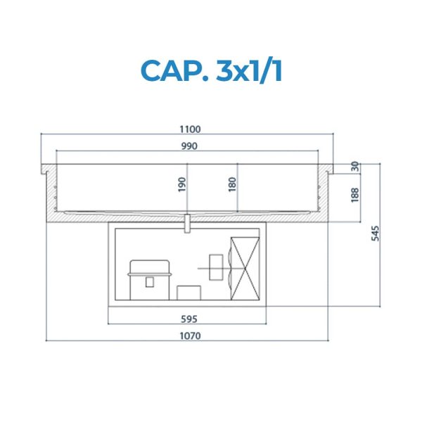 Cuve réfrigérée (temp. de -5°C à +5°C) à encastrer pour 3 bassins GN 1/1 à réfrigération statique et groupe intégré