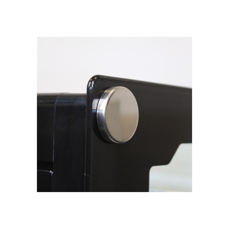 Structure extérieure en acier inox, plastique et verre.